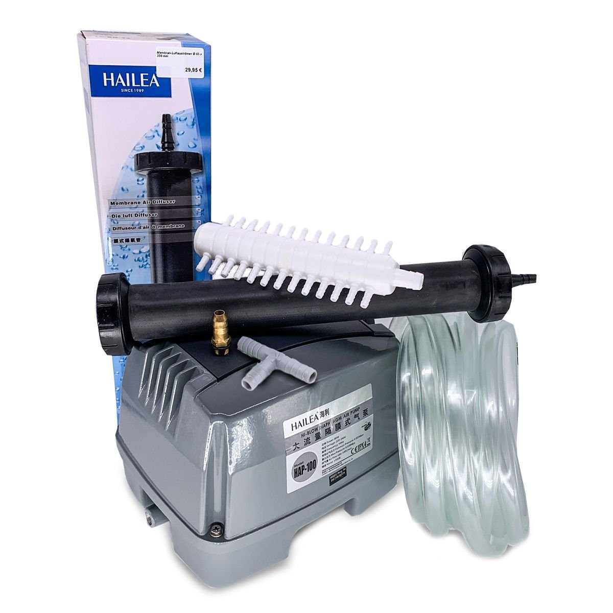Die Hailea Hi-Blow HAP-100 ist ein professioneller Membran-Kompressor der extra Klasse in einem attraktiven Design mit sehr hoher Luftleistung. Ideal für Teiche mit hohem Fischbesatz.
